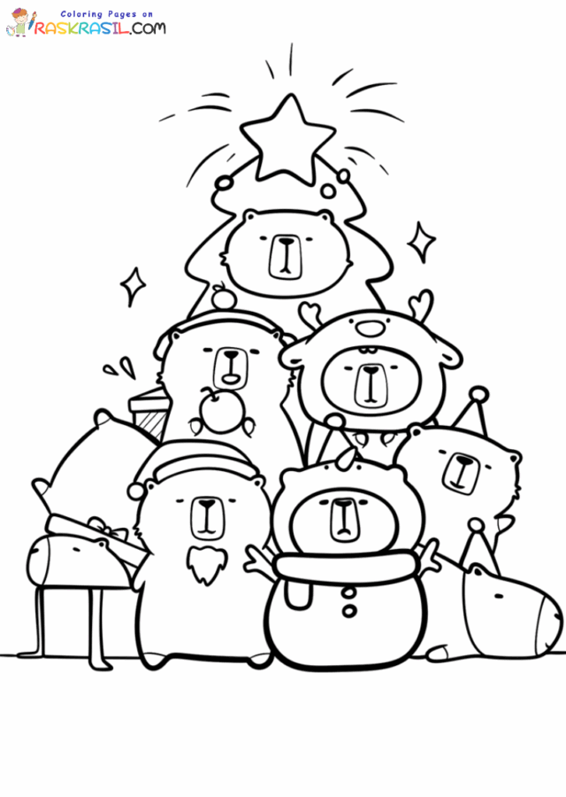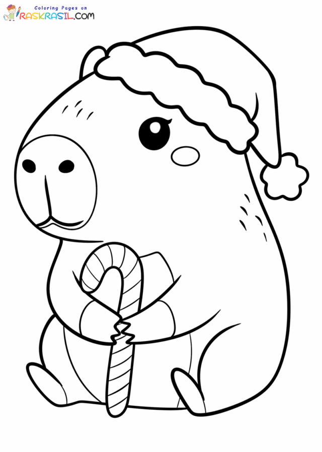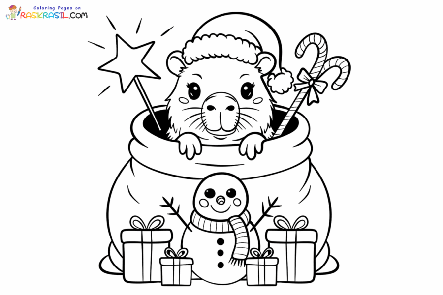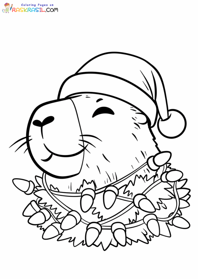 Festive joy permeates these 21 free printable and downloadable Christmas Capybara coloring pages. Winter wonders, cute animals, and a festive spirit add a whimsical touch to this holiday. You'll find illustrations of Capybaras wearing a New Year's hat, a scarf, an Ugly sweater, on a sleigh, near a Christmas tree, and other Christmas coloring pages. All images are presented in PNG format. To start coloring, click on the coloring picture you like – a new tab will open with the illustration in maximum quality. All coloring pages are standard A4 size, but are also great for standard US-latter size. Merry Christmas🎁