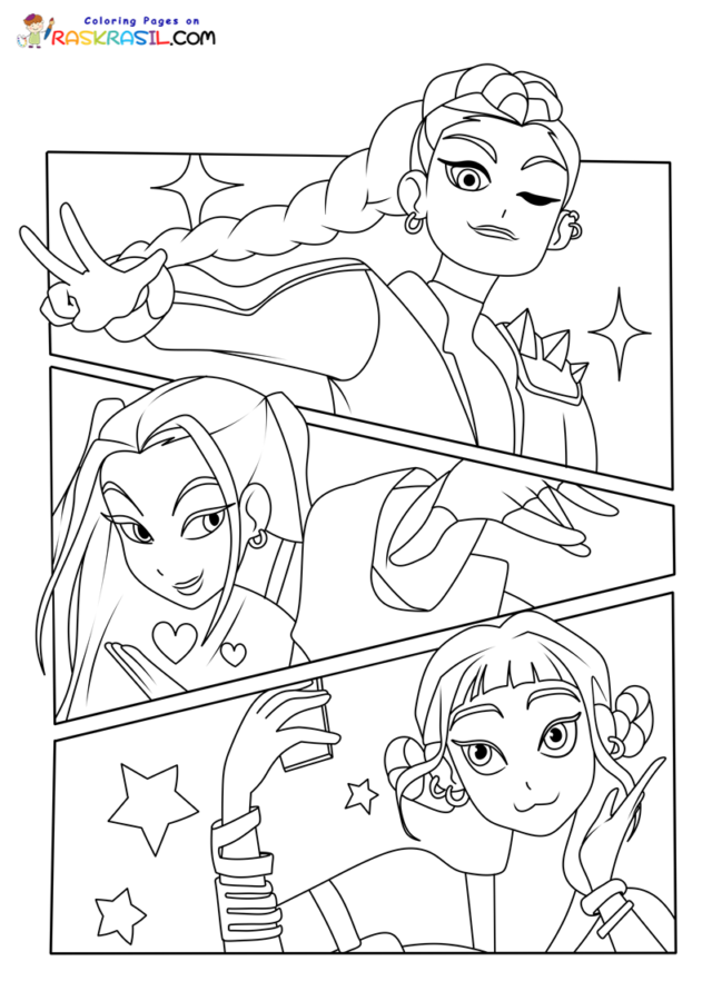 Omalovánka KPop Demon Hunters v komiksovém stylu