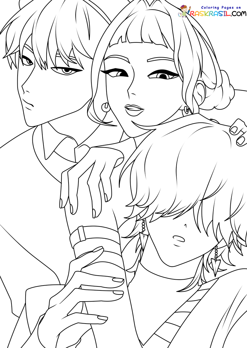 Obrázek k vybarvení anime KPop Demon Hunters
