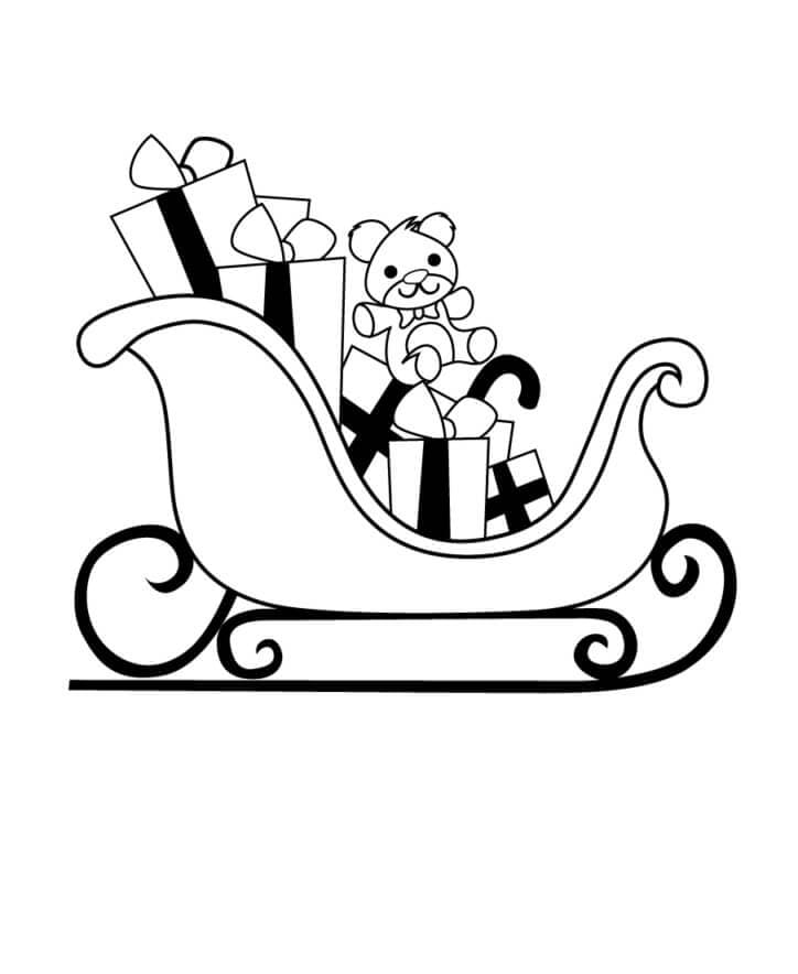En bjørneunge trækker en slæde med Fader Frost og Snepigen