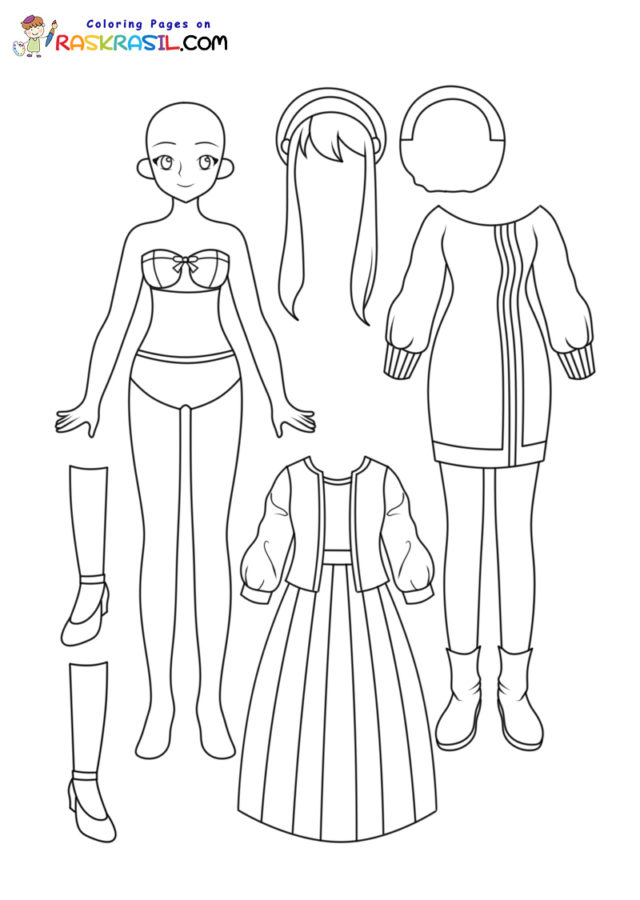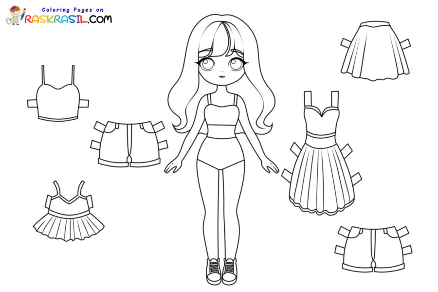 Paper doll and outfits coloring page