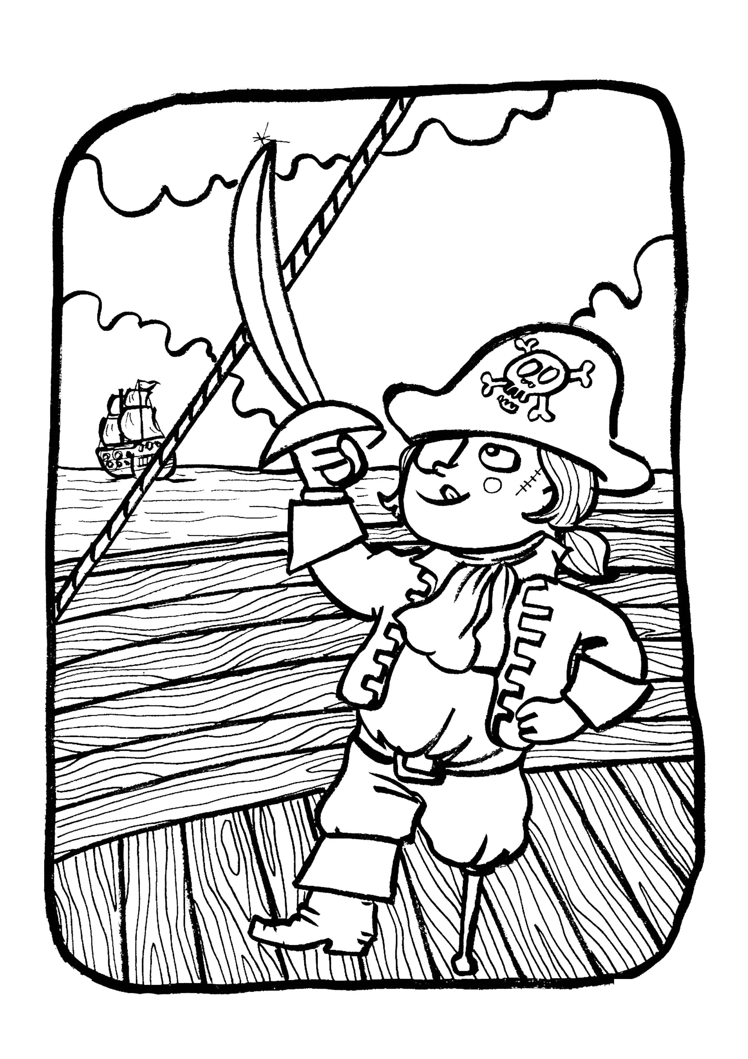 Everyone knows the image of a real pirate. This is an unkempt, one-legged, one-eyed hero with a hook for an arm and a saber in the other hand. The image of a pirate is always associated with his inseparable partner - a huge green talkative parrot. The main goal of the battles and attacks of pirates on other ships is to hunt for valuable things necessary for survival at sea and, of course, for treasures. Particular attention was paid to the pirate ship, which always looked very impressive, powerful and intimidating, which also helped them take possession of the property of another ship. Experience the world of masterly robbers and treasure hunters in the coloring pages below.